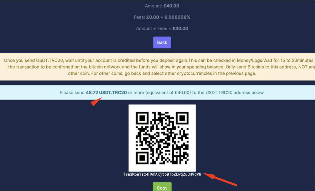 Choose USDT as the cryptocurrency you want to deposit.