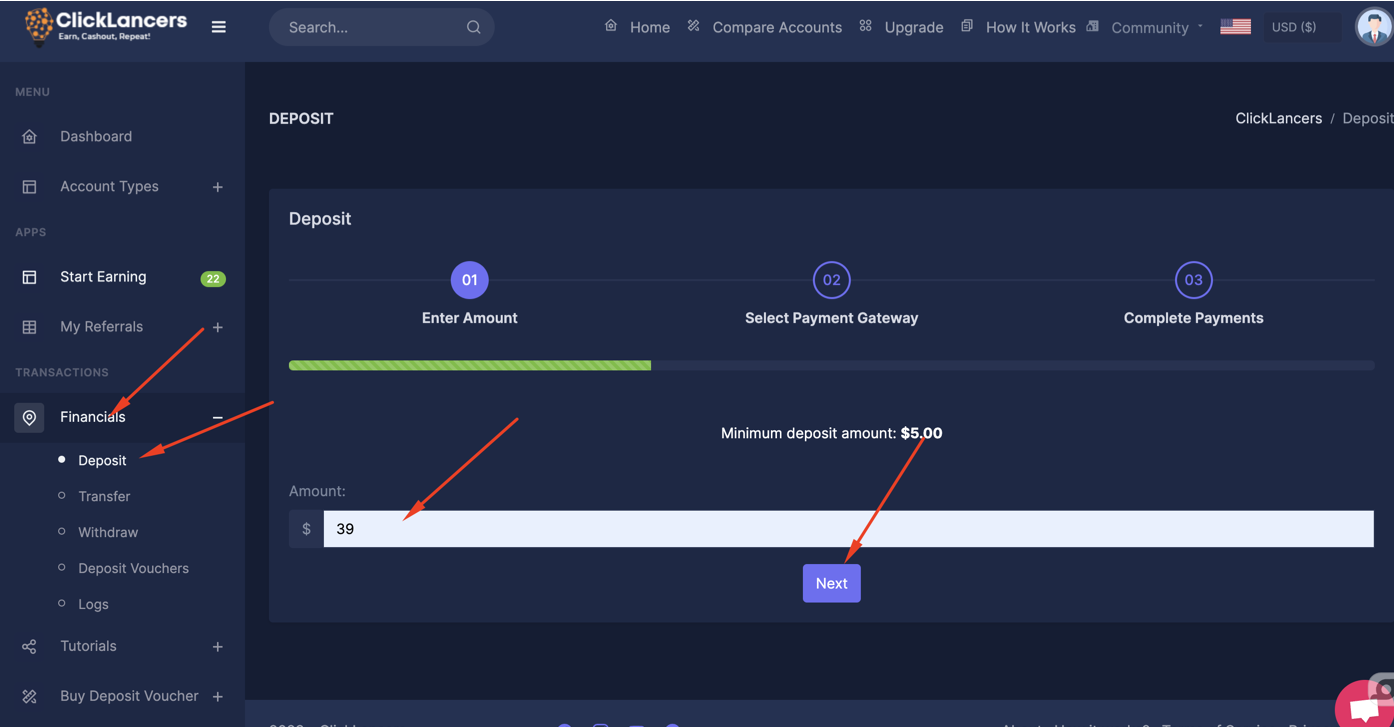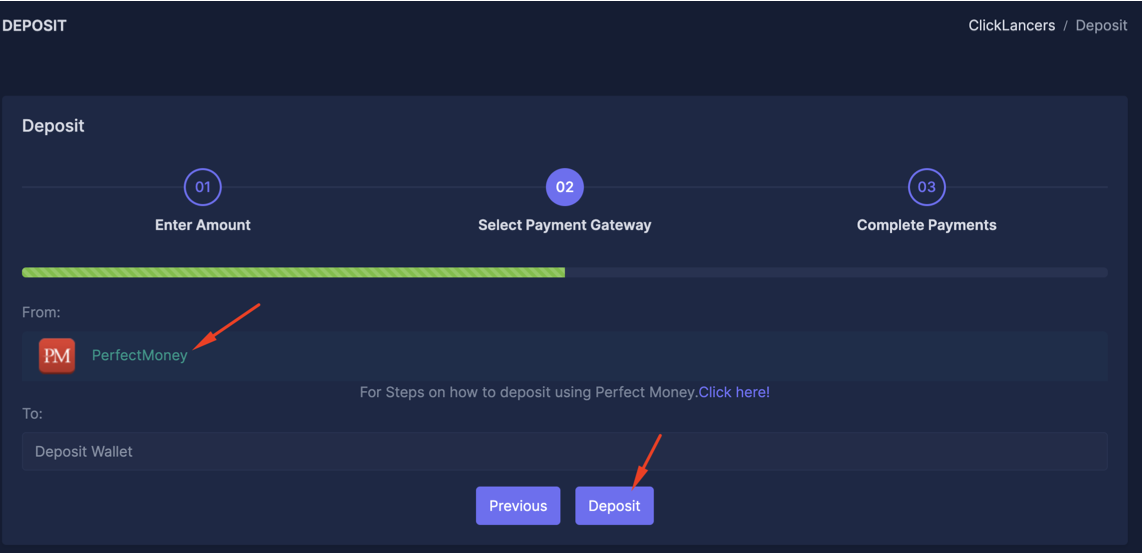 After payment, the amount is credited to your Clicklancers deposit wallet